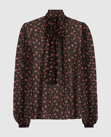• Декор квітковий принт, комір-аскот, фігурний низ