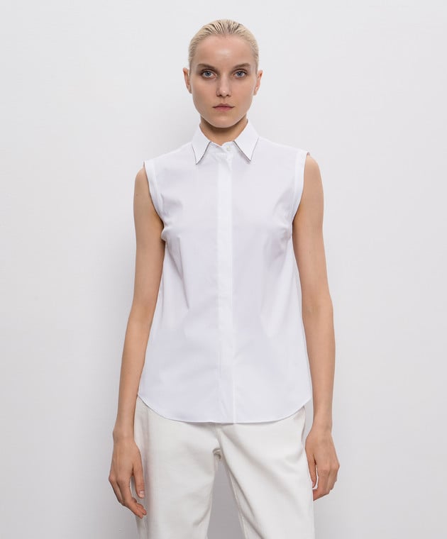 Біла блуза з ланцюжком моніль