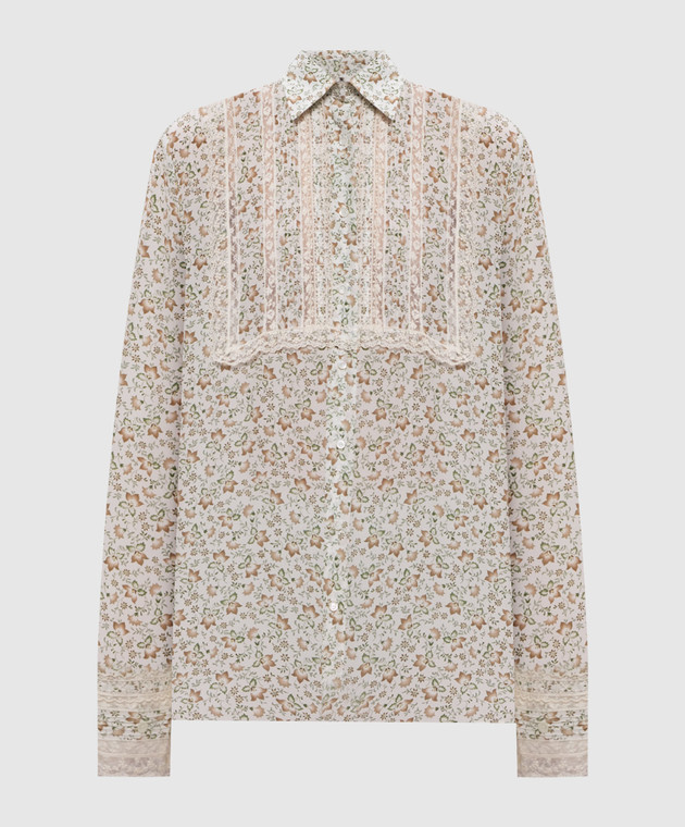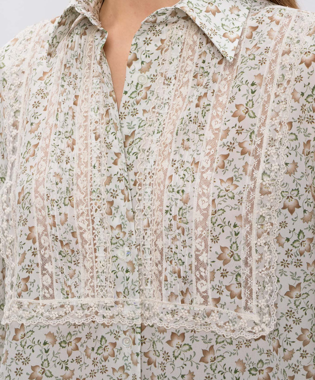 Біла блуза із шовку в квітковий принт