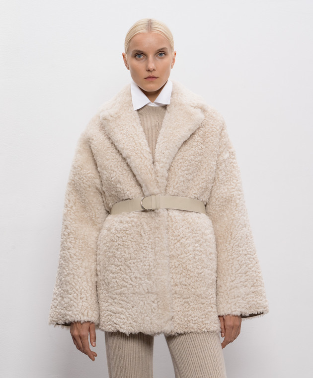 Біла двостороння дублянка з поясом