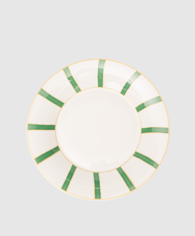 Біла порцелянова десертна тарілка Striche Verdi e Oro