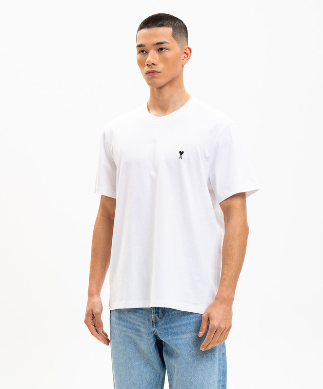 Біла футболка з контрастною вишивкою емблеми