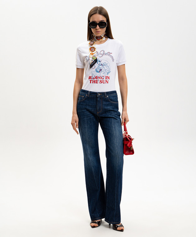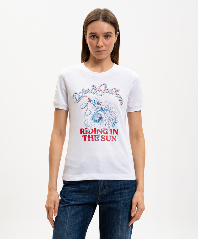 Біла футболка з принтом та вишивкою