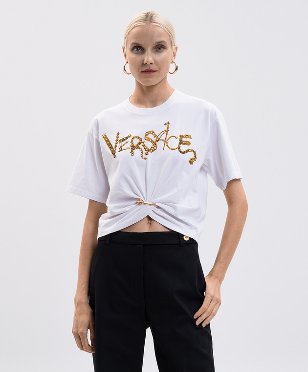 • Декор принт логотипа, декоративні заклепки, драпірування, брендова шпилька з емблемою Medusa