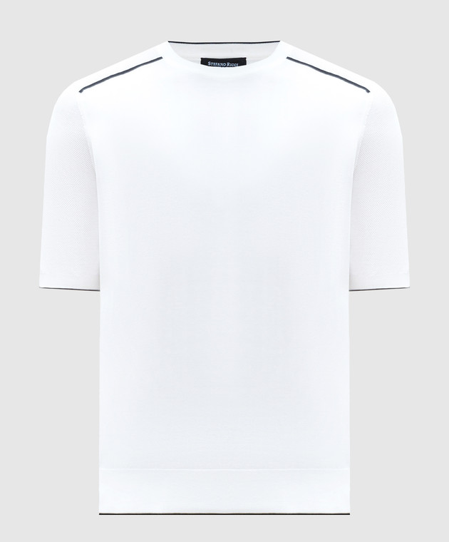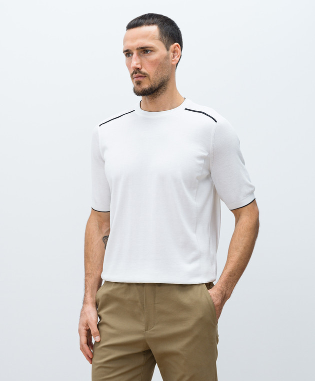 Біла футболка з шовком з вставкою зі шкіри крокодила