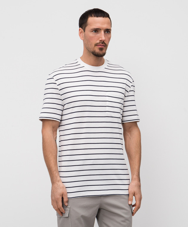 Біла футболка з шовком в смужку