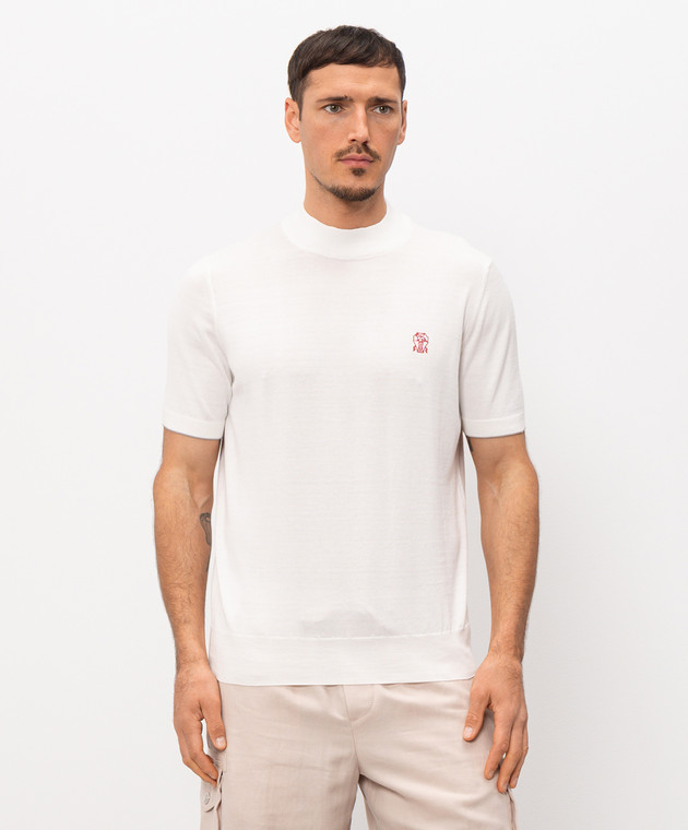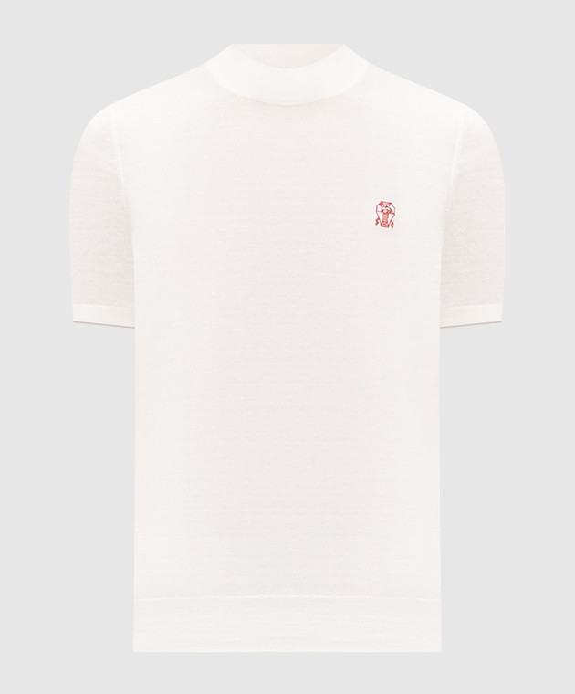Біла футболка з вишивкою емблеми