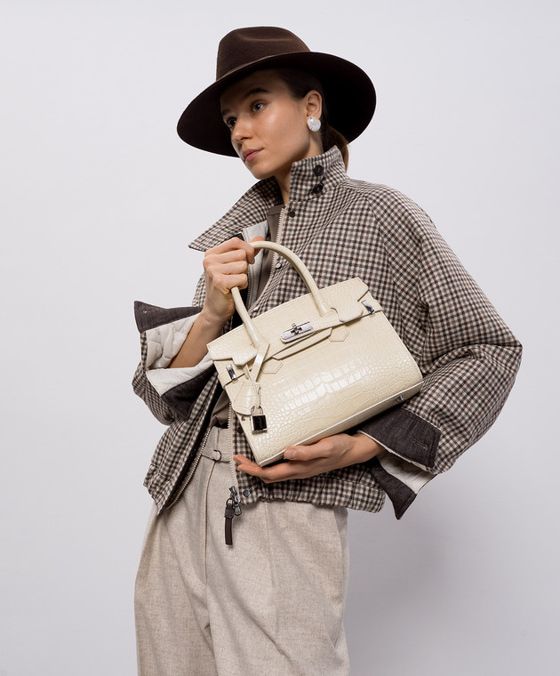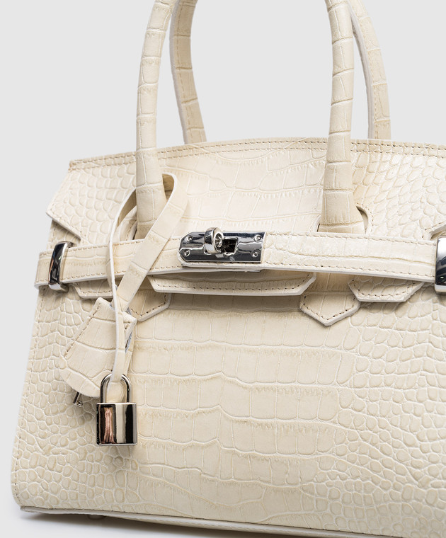 Біла шкіряна сумка Cocco з тисненням під шкіру крокодила