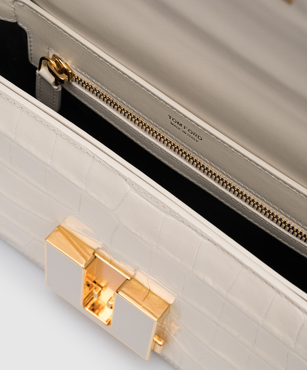 Біла шкіряна сумка крос-боді Chain з тисненням під шкіру крокодила