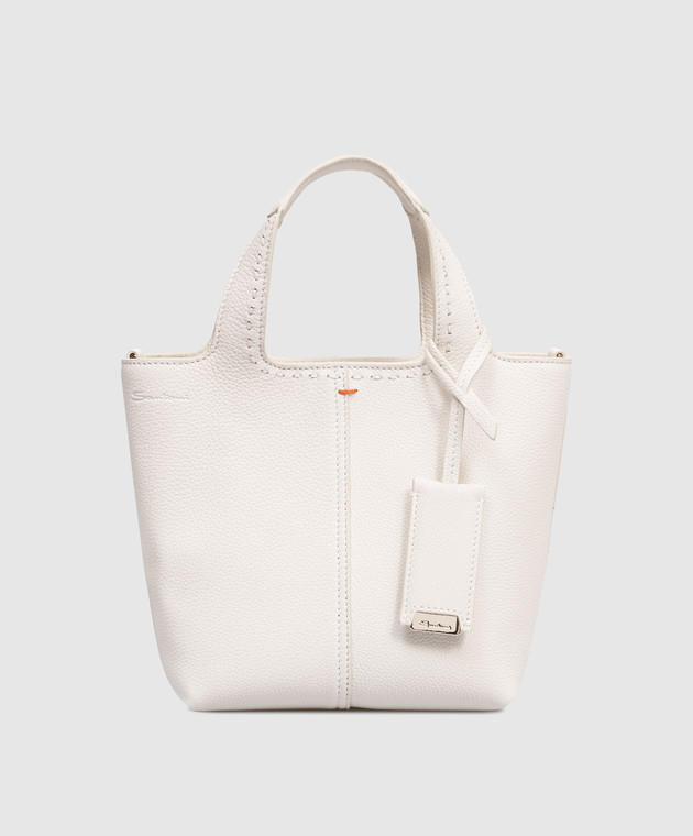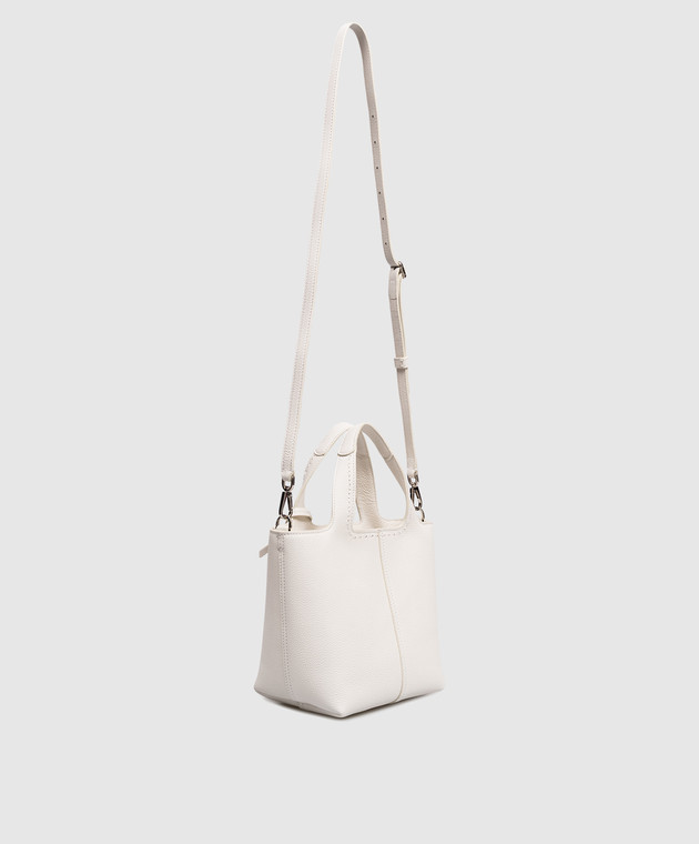 Біла шкіряна сумка-тоут з тисненням логотипа