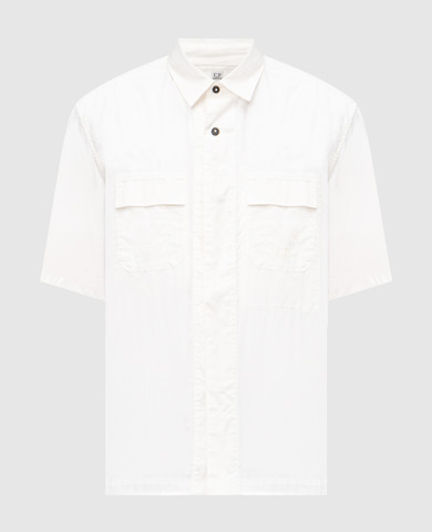 C.P. Company Біла сорочка з льону з принтом логотипа MSH250A005415G