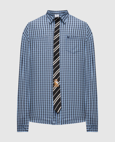 • Декор аплікація у вигляді краватки з вишивкою логотипа, асиметричний фігурний низ, бантова складка