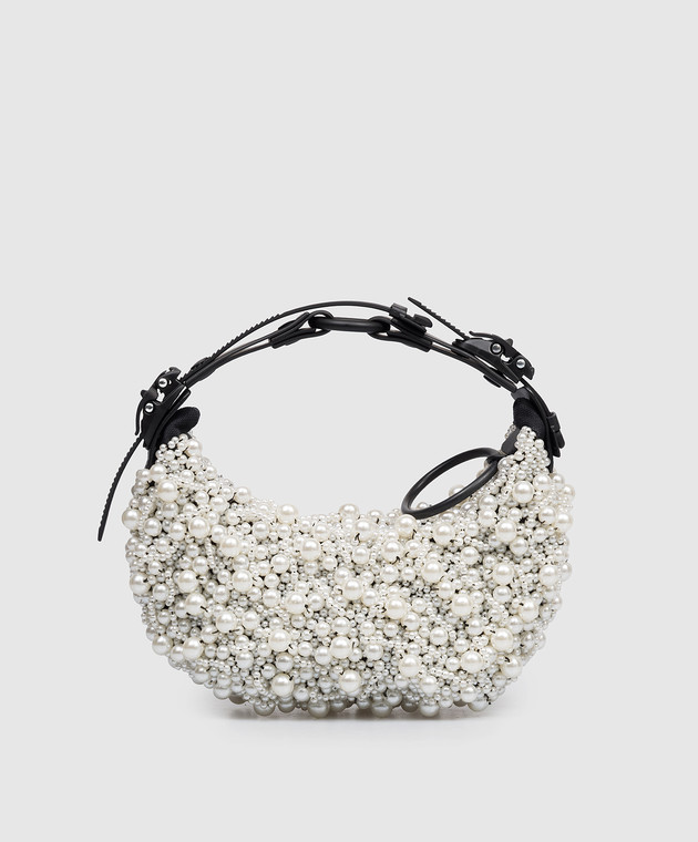 Біла сумка-хобо HM0 з намистинами у вигляді