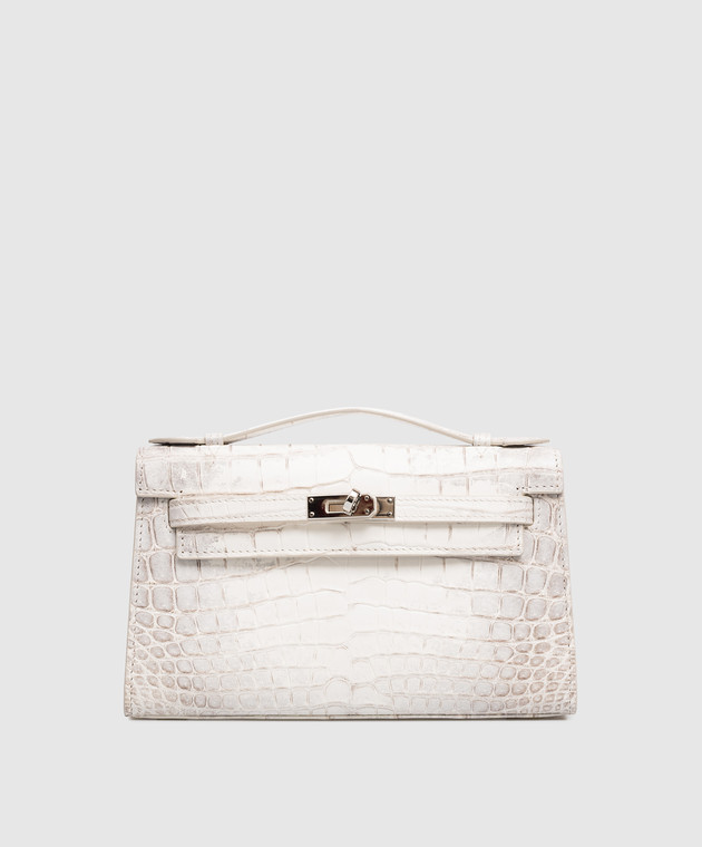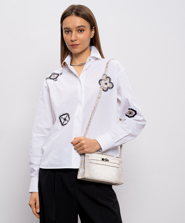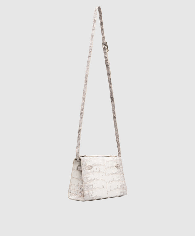 Біла сумка крос-боді зі шкіри крокодила з мармуровим ефектом