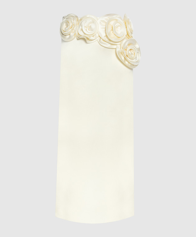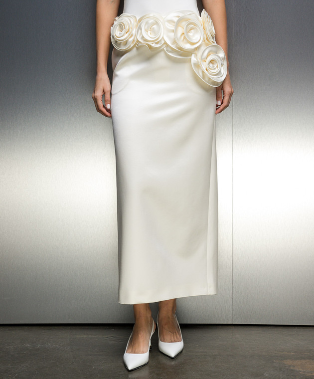 Біла спідниця із шовку і вовни з аплікацією у вигляді квітів