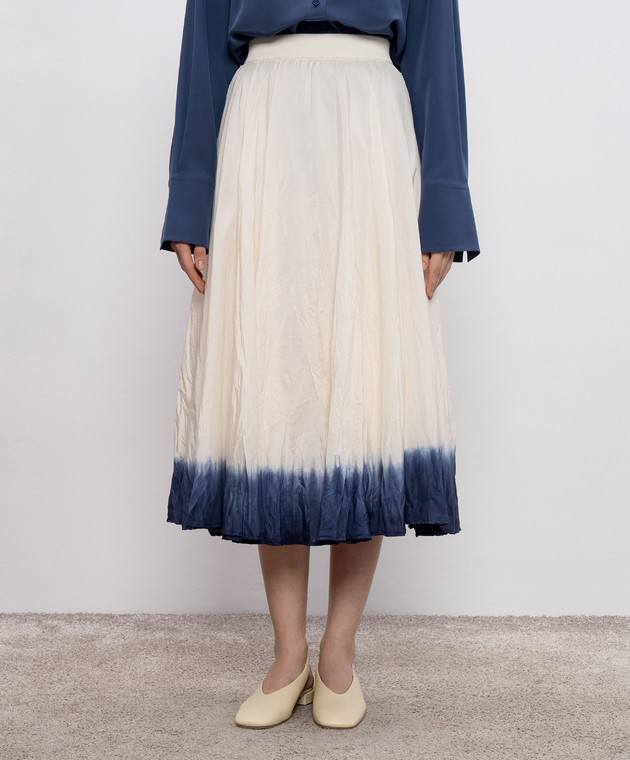 Біла спідниця міді із шовку з ефектом жатки
