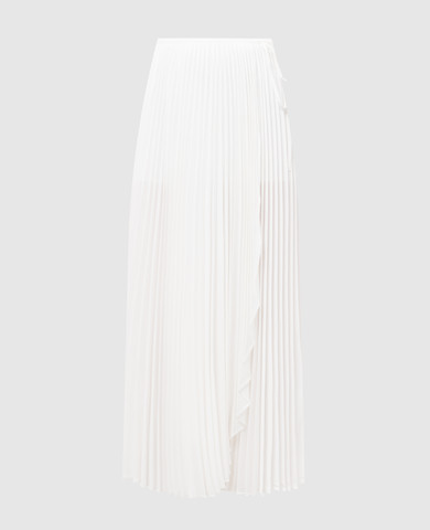 Біла спідниця міді з квітковою вишивкою