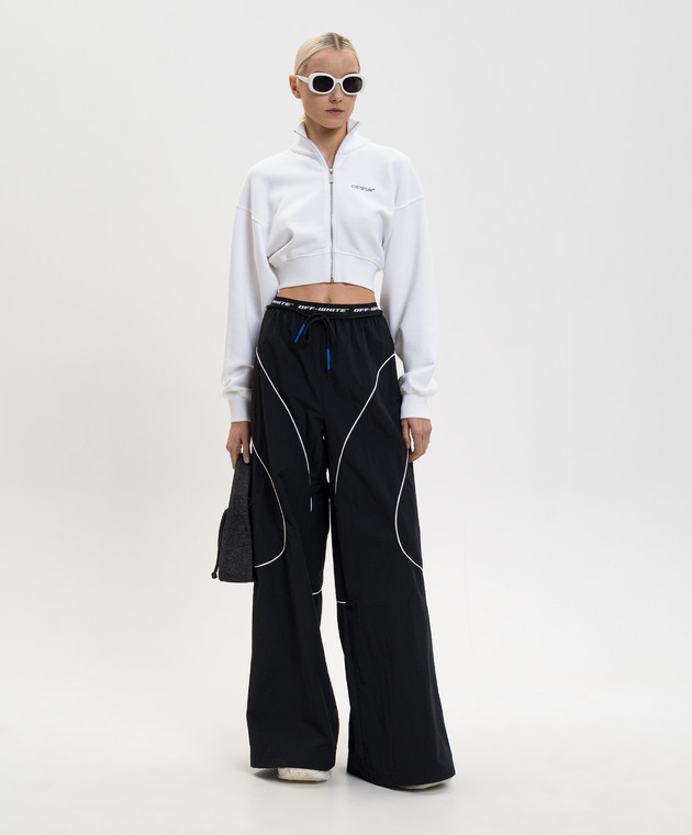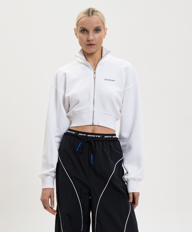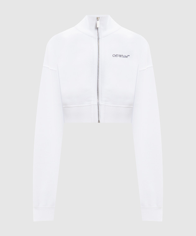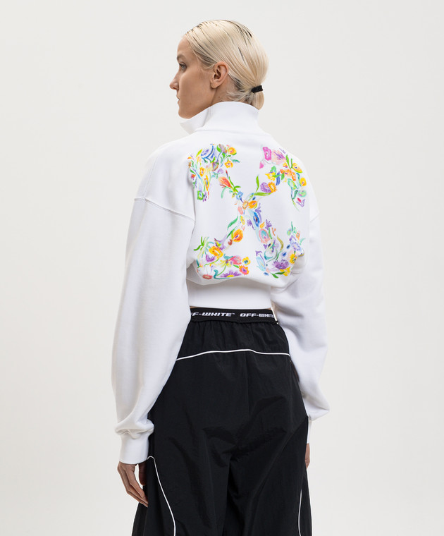 Біла укорочена спортивна кофта з квітковим принтом емблеми