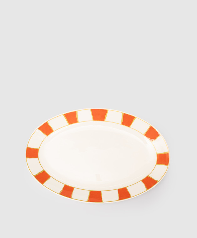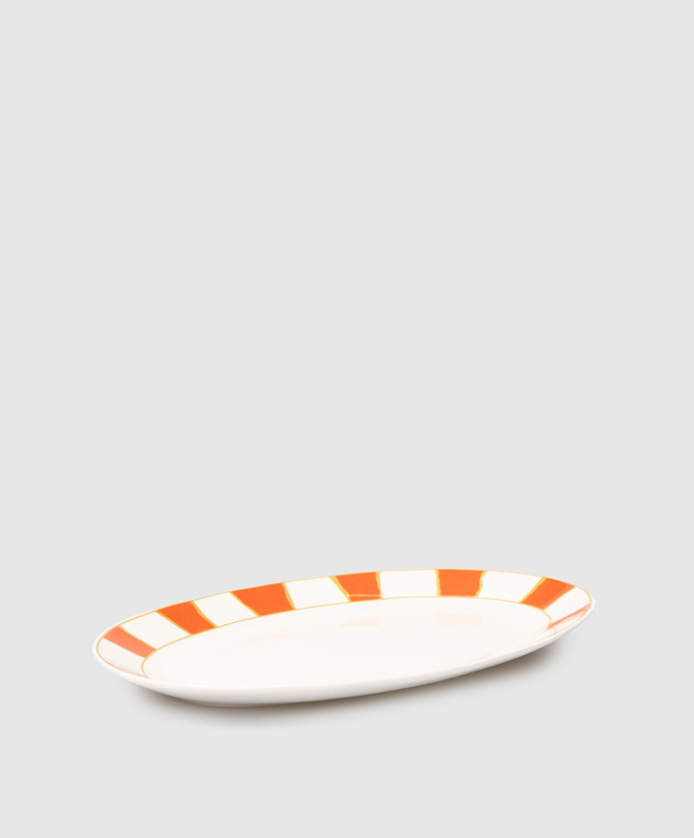 Білие порцелянове овальне блюдо Striche Arancio e Oro