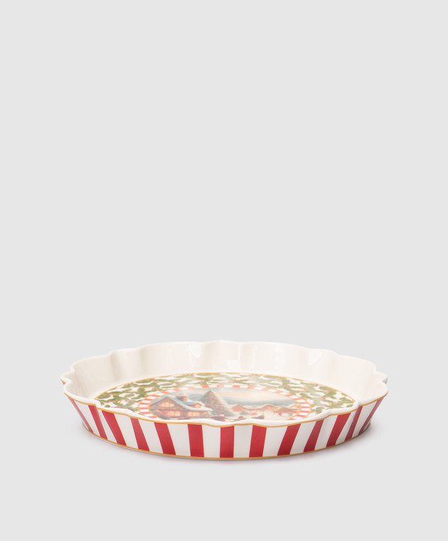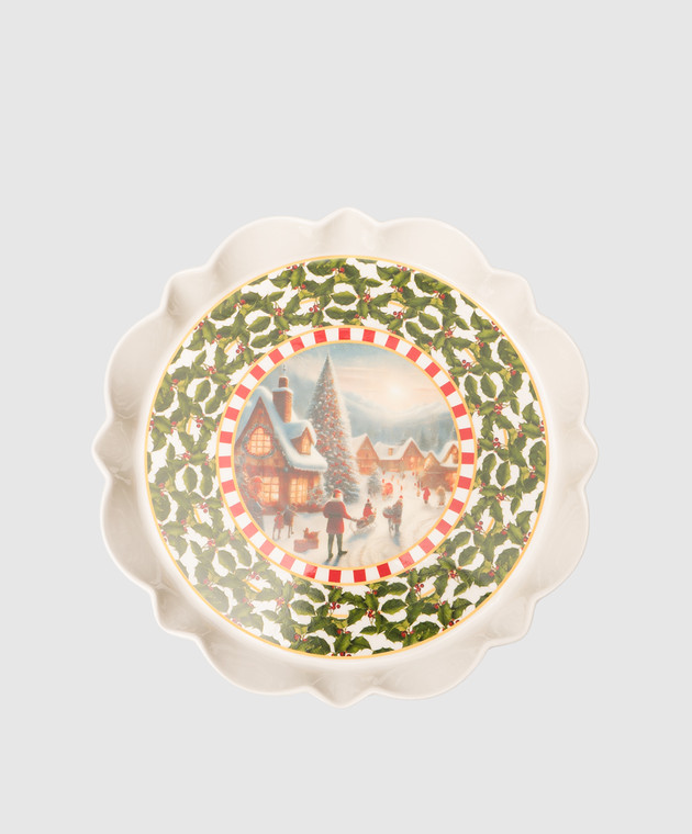 Біле порцелянове сервірувальне блюдо в різдвяний принт