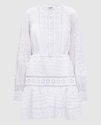 Біла сукня Greba з льоном з вишивкою
