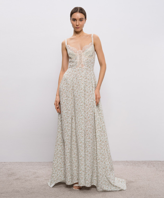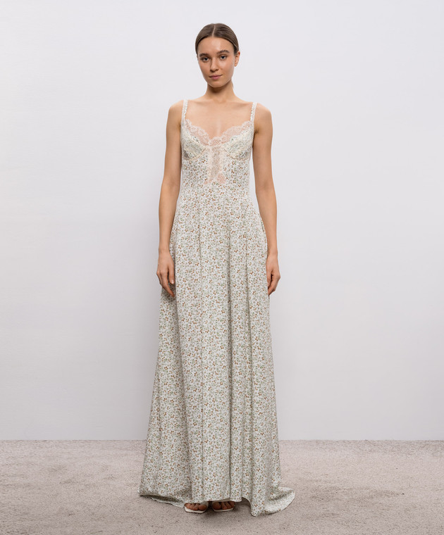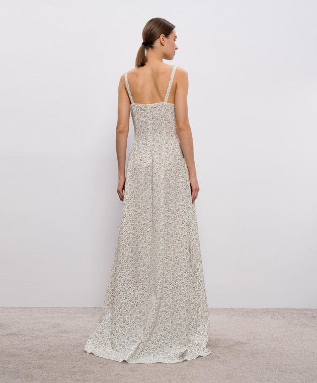 Біла сукня максі із шовку в квітковий принт