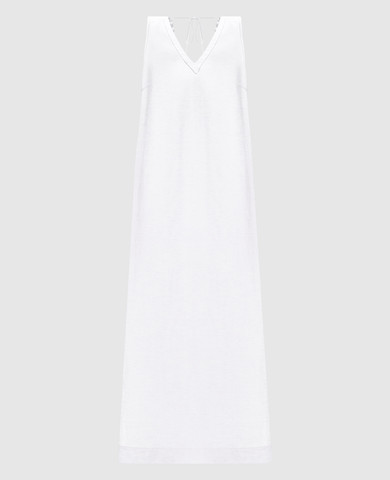Біла сукня максі з льоном з паєтками