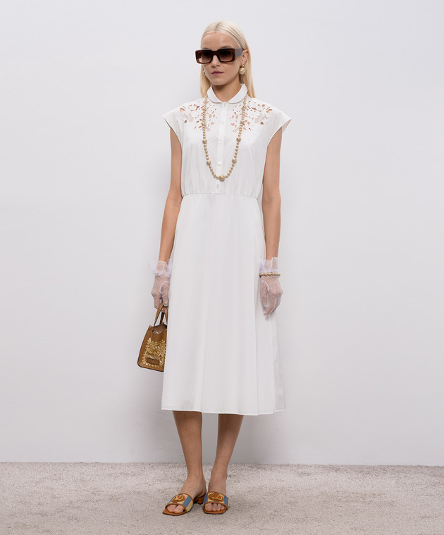 Біла сукня міді з вишивкою рішельє
