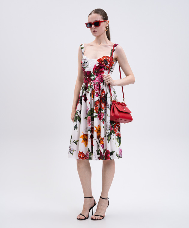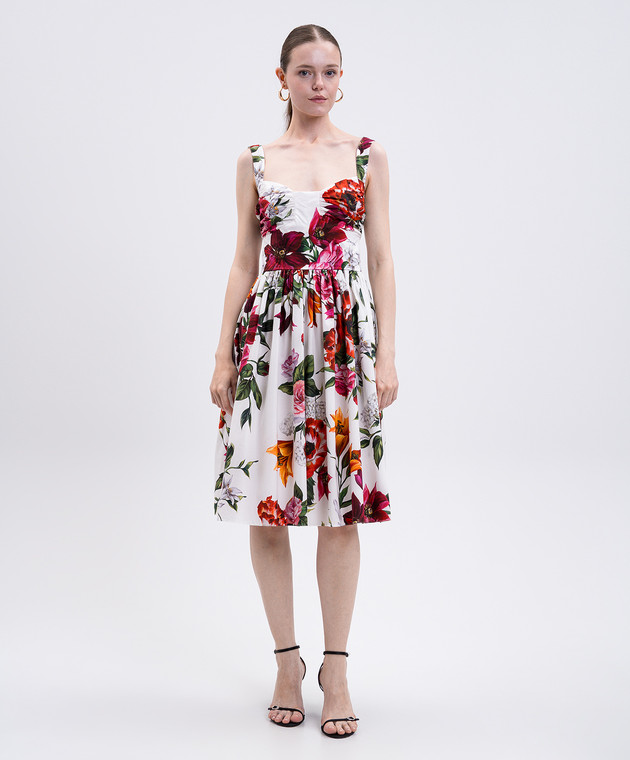 Біла сукня міді в квітковий принт