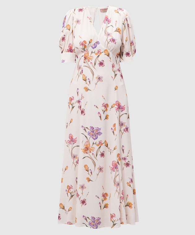 • Декор квітковий принт, фігурний виріз на спині, драпірування, металевий логотип Oval T