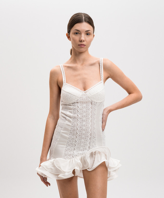 Біла сукня міні Cherrie з шовком з мереживом