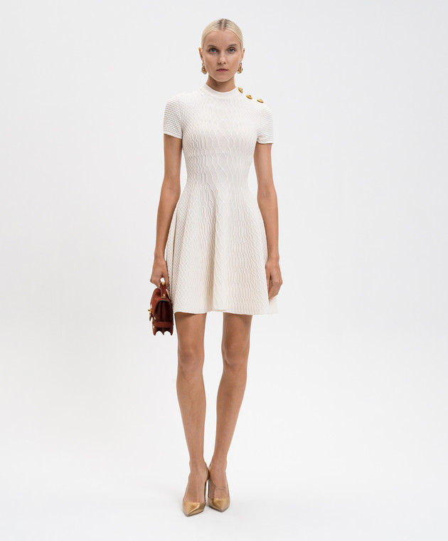 Біла сукня міні з фактурним візерунком