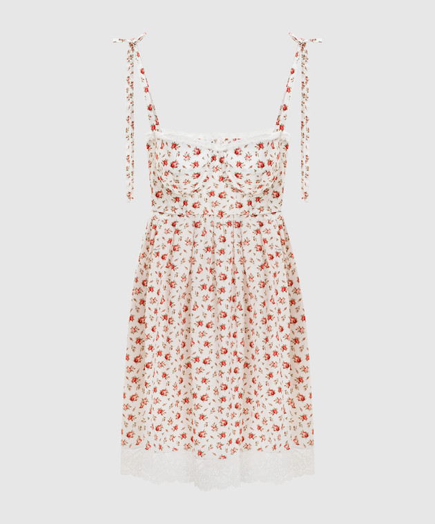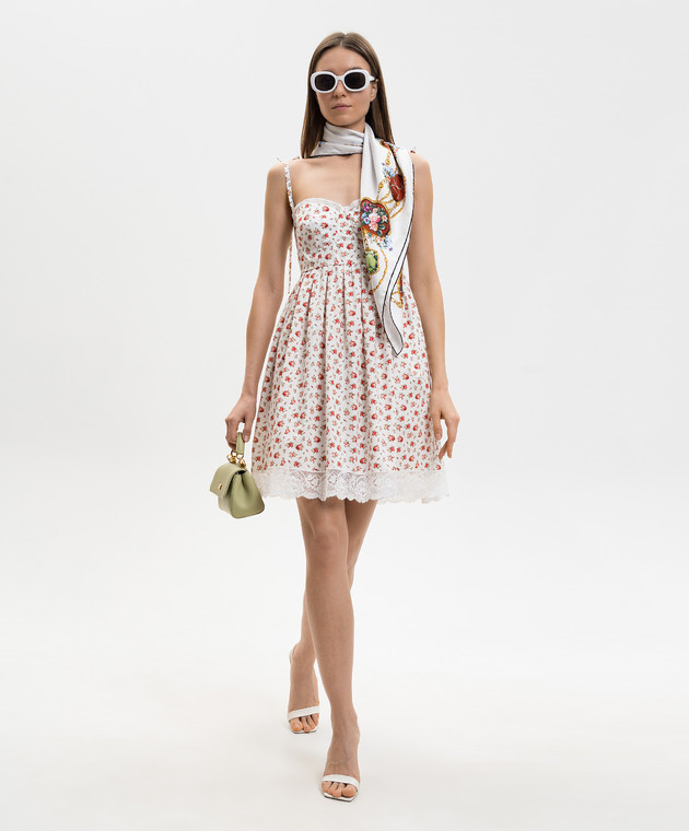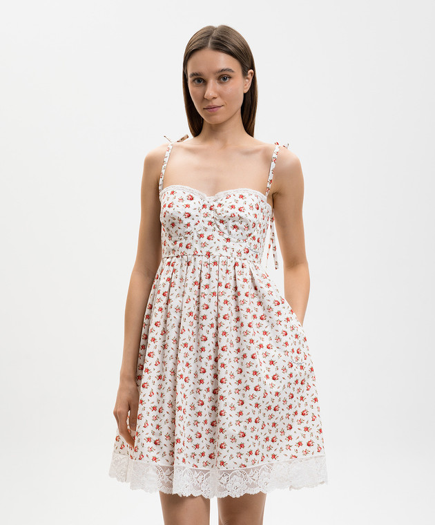 Біла сукня міні в квітковий принт з мереживом