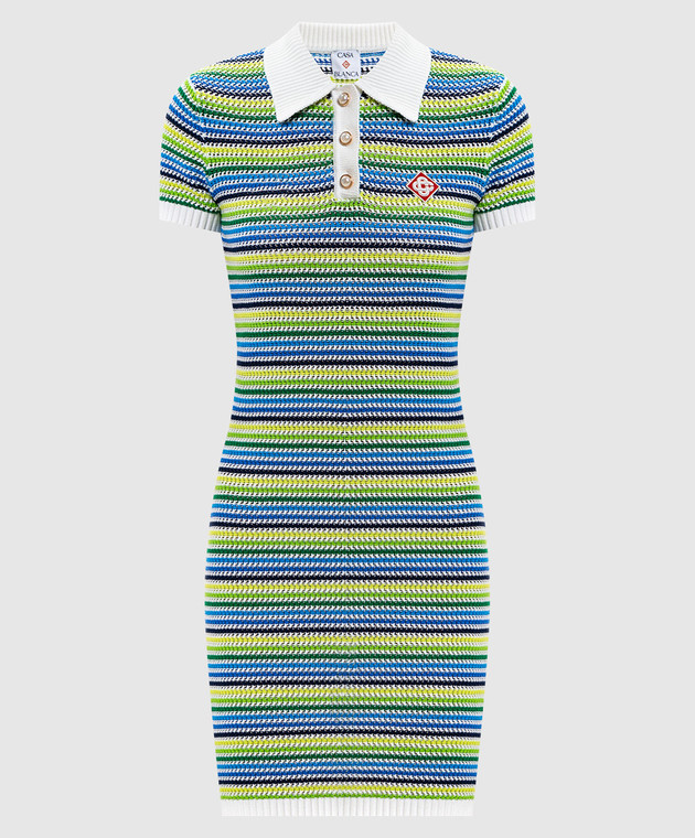 Біла сукня-поло в смужку з емблемою