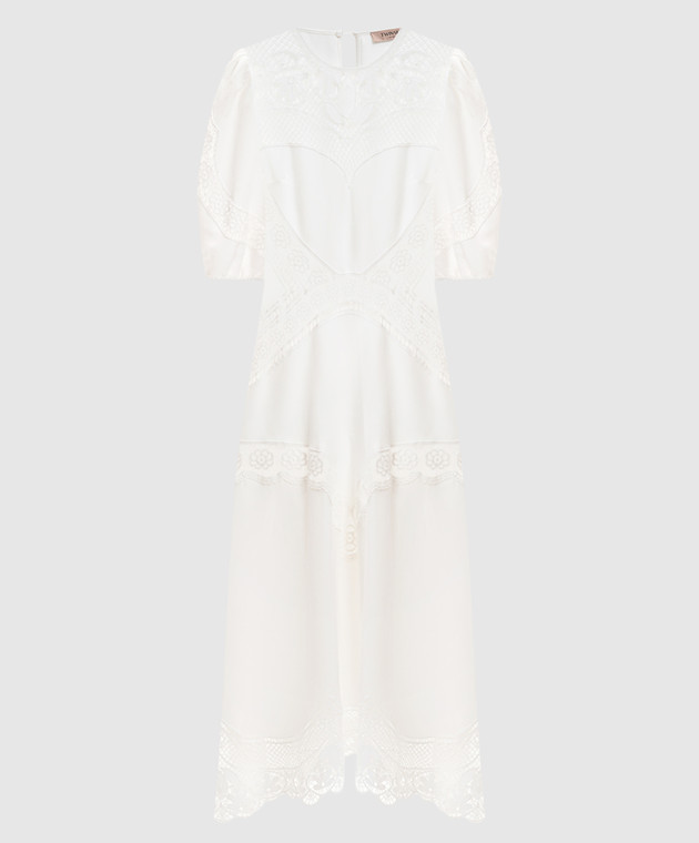 Біла сукня з льоном з ажурними вставками