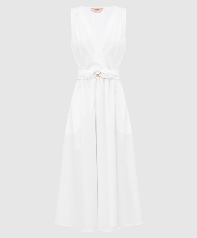 Біла сукня з металевим логотипом