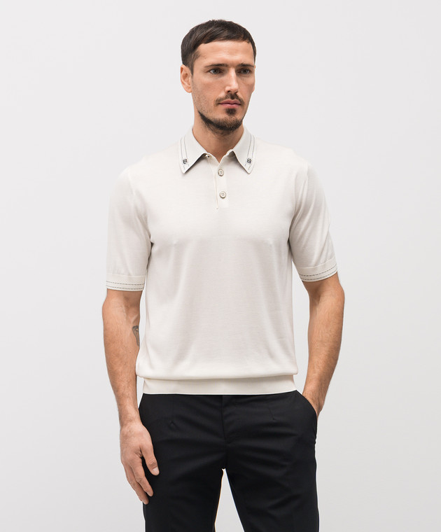 Біле поло із шовку з логотипом