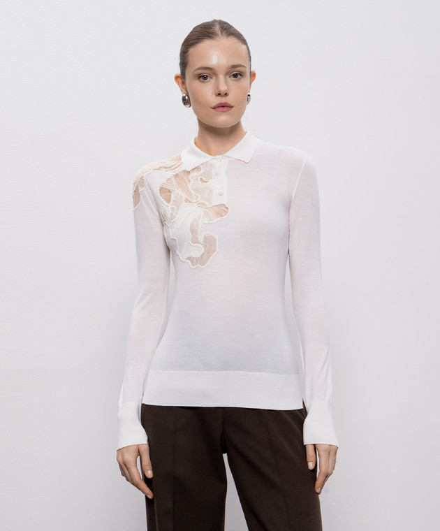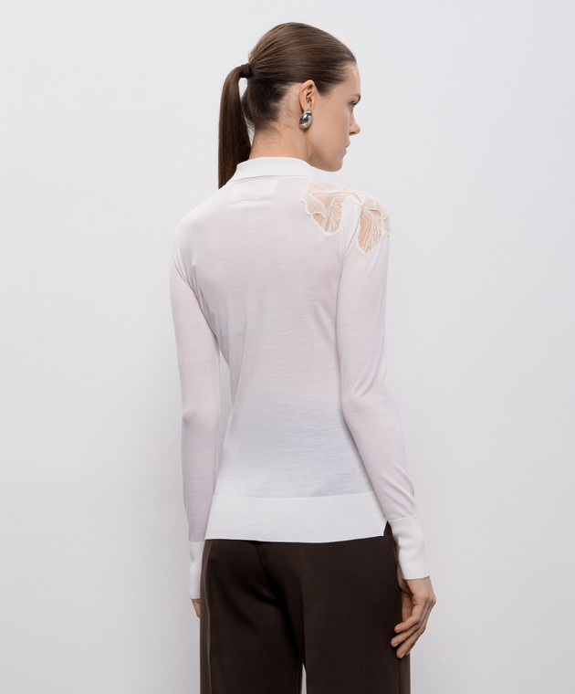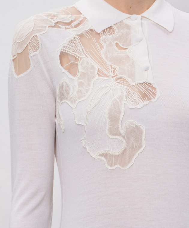 • Декор нашивка монограми логотипа з мережива, вставки з мережива, розрізи на рукавах, розрізи в бокових швах