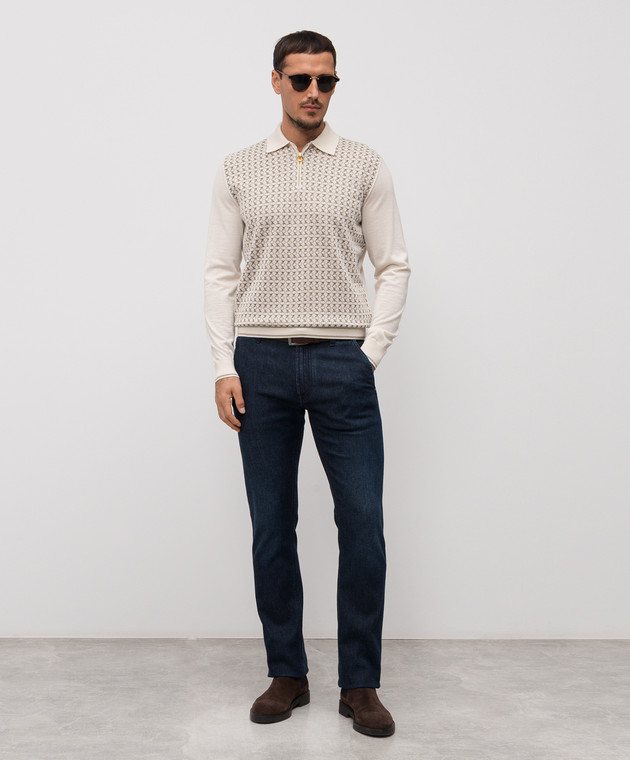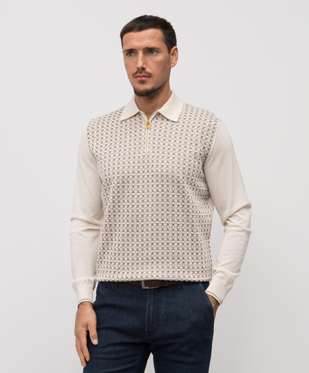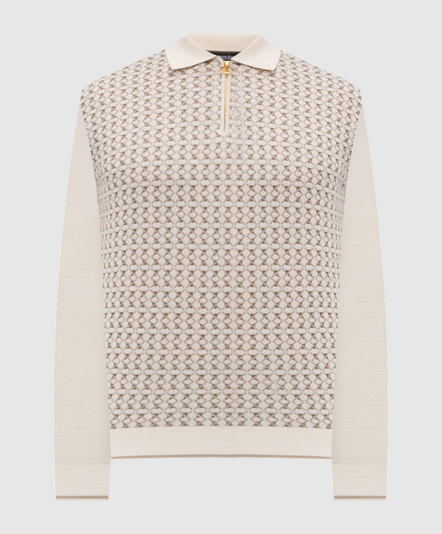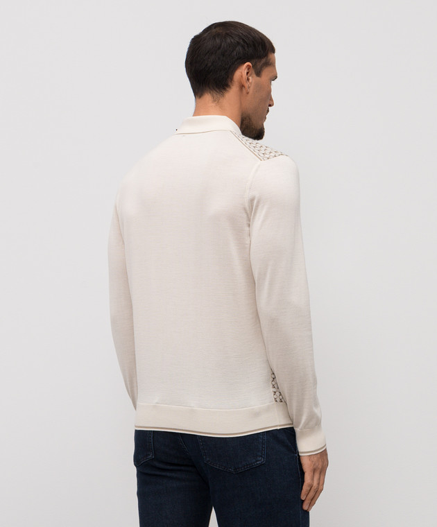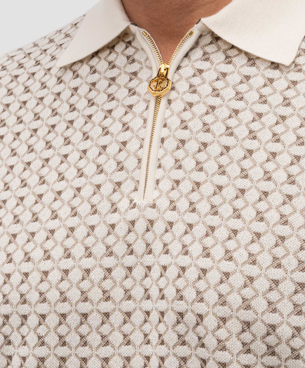 Біле поло з кашеміру і шовку в контрастний візерунок