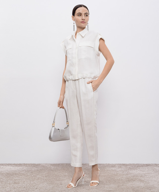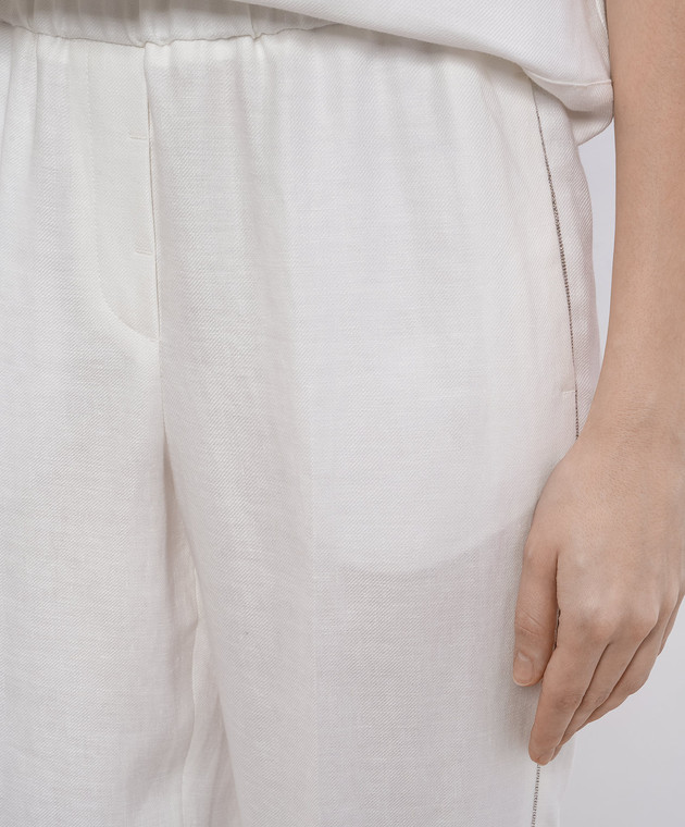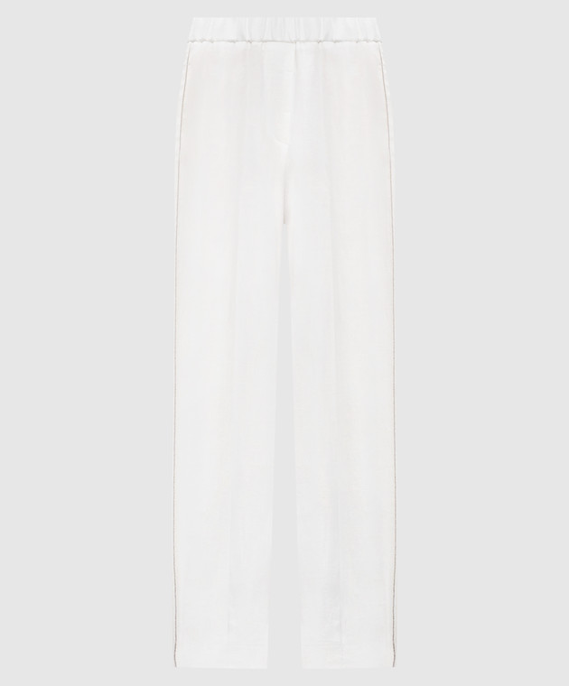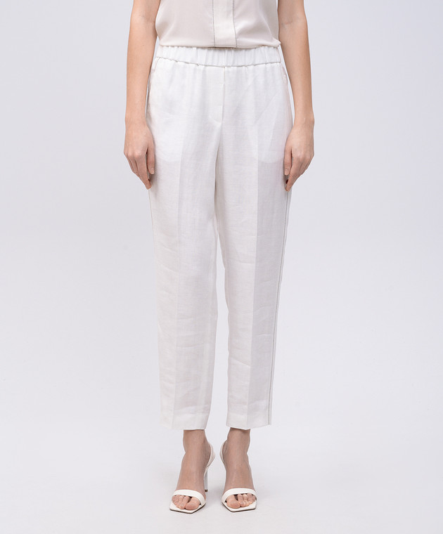 Білі штани з льону з ланцюжком моніль