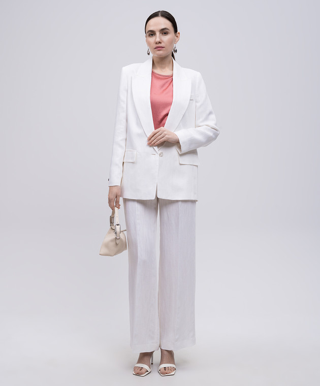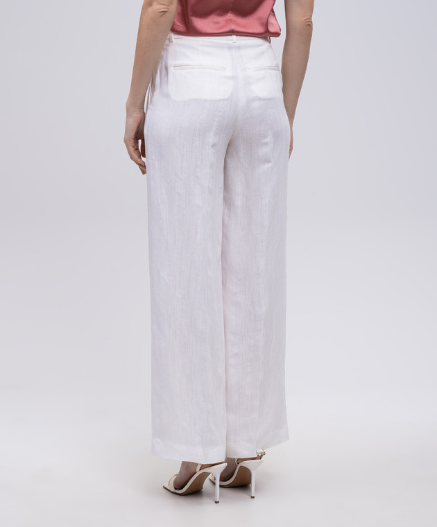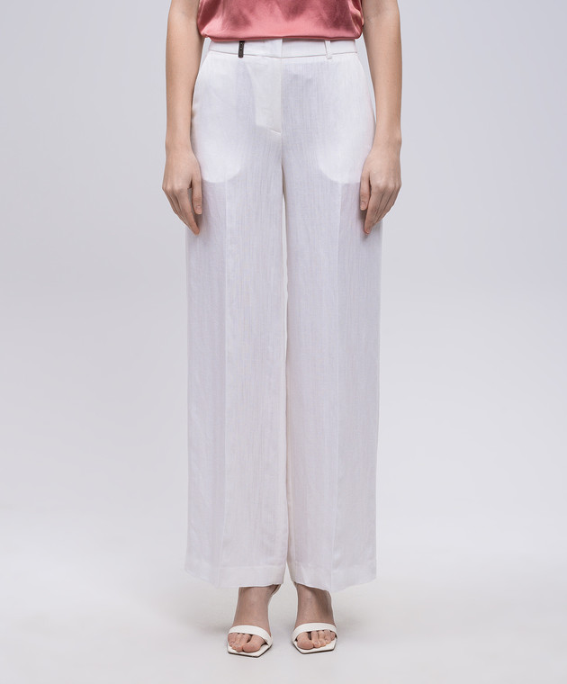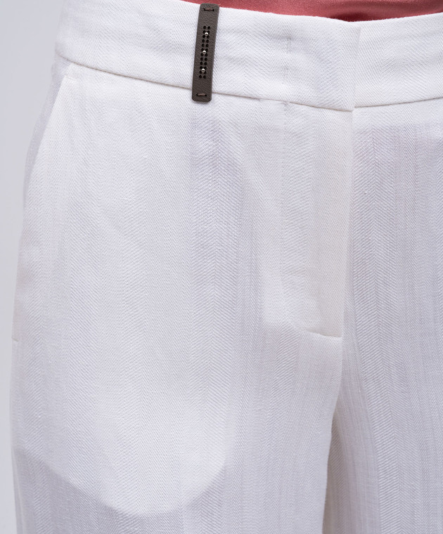 Білі штани з льоном з брендовим патчем