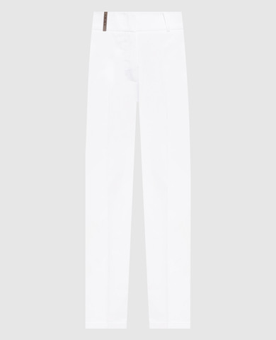 Білі штани з льоном з ланцюжком моніль