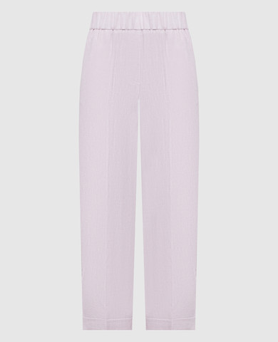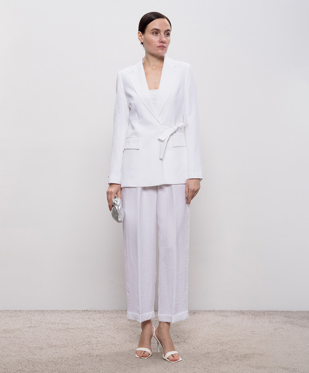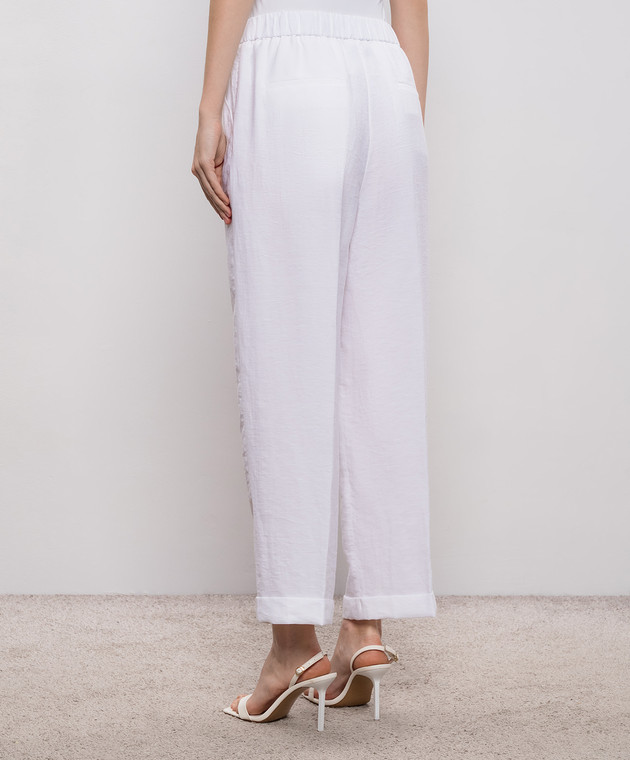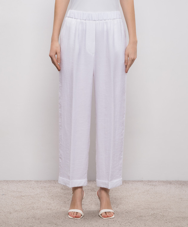 Білі штани з льоном з відворотами