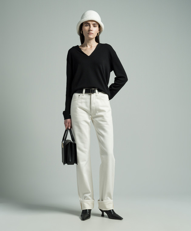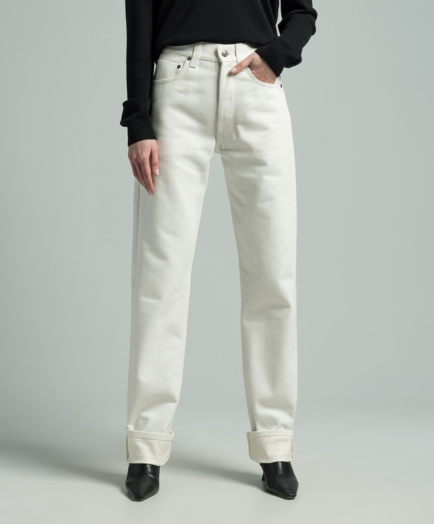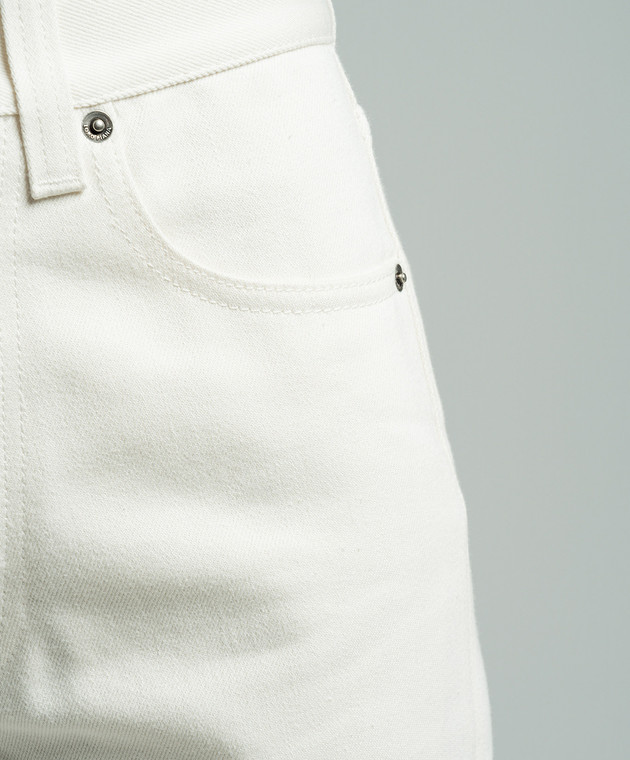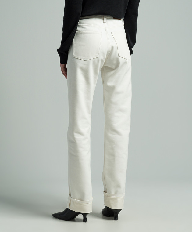 Білі джинси з шовком зі шкіряним патчем логотипа