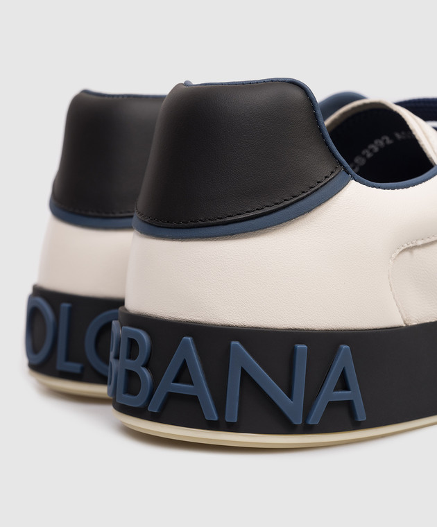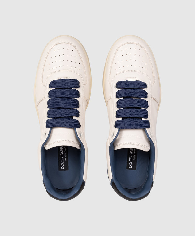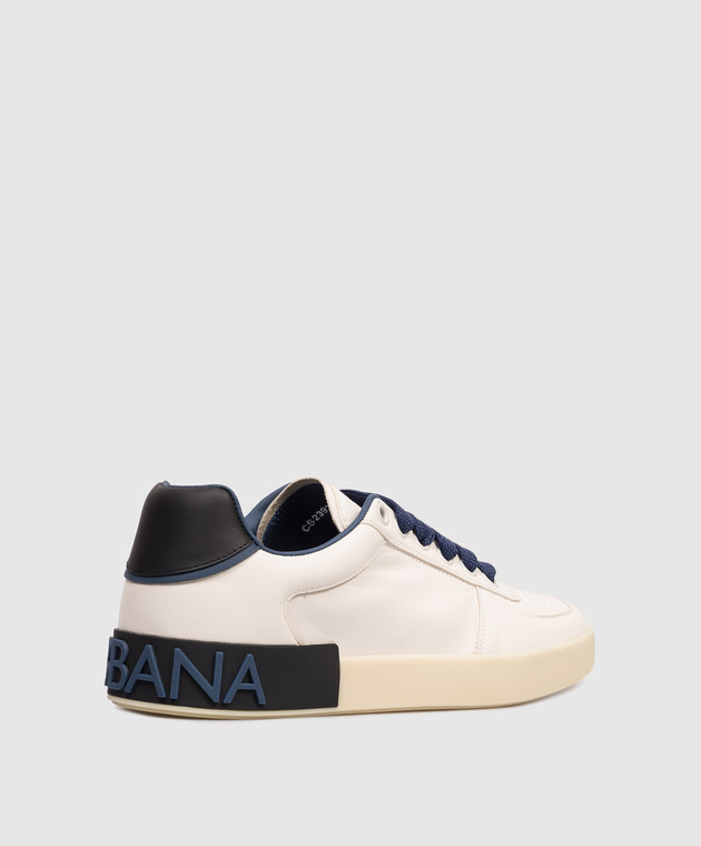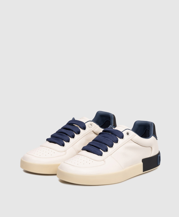 Білі шкіряні кросівки з фактурним логотипом