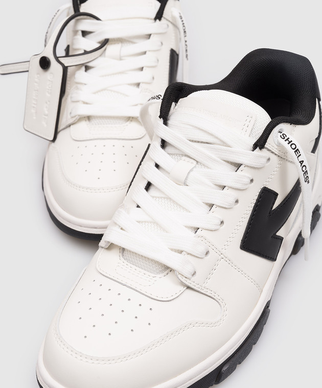 Білі шкіряні кросівки з контрастною емблемою