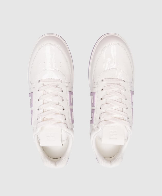 Білі шкіряні лаковані кросівки з логотипом