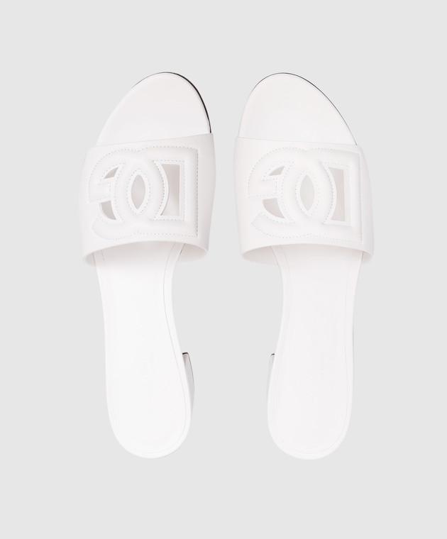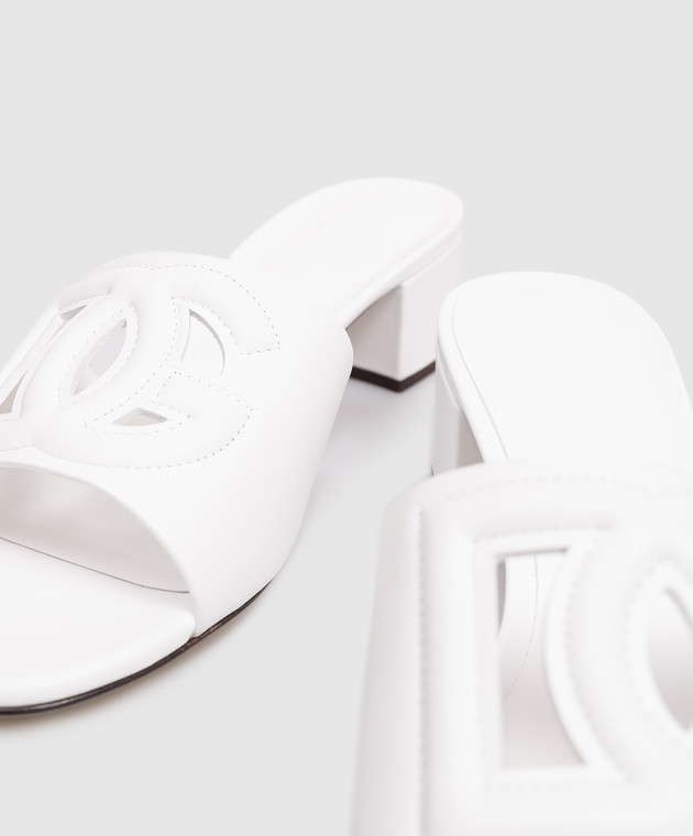 Білі шкіряні мюлі з логотипом