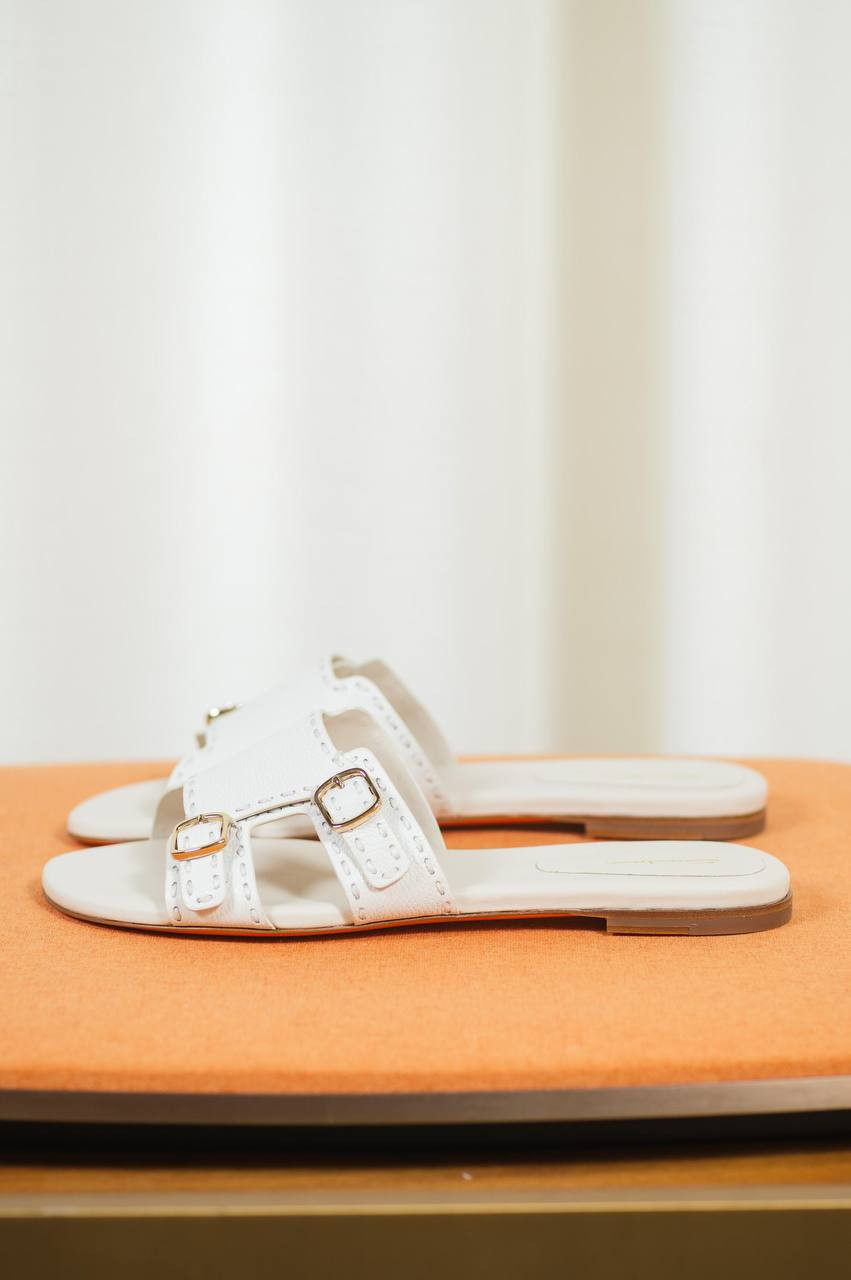 Білі шкіряні шльопанці