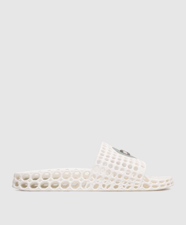 Білі перфоровані слайдери з фактурною емблемою